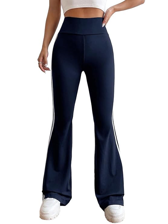 • Features: High Rise||Flare leg bell bottom style||Elastic Waist closure||Side Stripe||Regular Fit