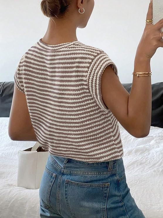 • Fashion Design: This cap sleeve is designed with fashionable stripes, which gives you a feeling of youthful vitality. The short-sleeve design is suitable for summer wear, showing off women’s arm lines. It is designed in a fashionable and casual style, perfect for matching with various underwear and accessories.